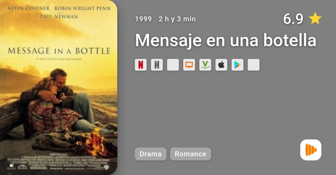 Durante un paseo por la playa, una periodista (Robin Wright Penn) del Chicago Tribune, divorciada y con un hijo, encuentra una botella con una carta de amor en su interior. Intrigada, decide buscar a su autor, un marinero viudo (Kevin Costner) que intenta superar la pérdida de su mujer Catherine, fallecida dos años atrás.